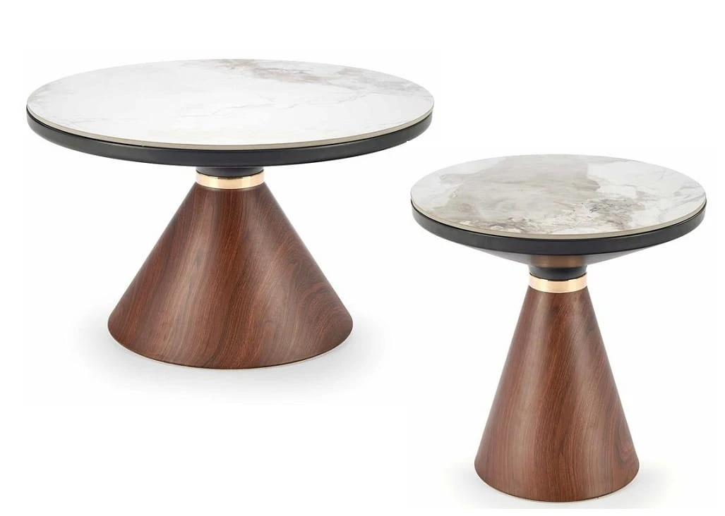 Okrągły stolik kawowy na nodze orzech/marmur