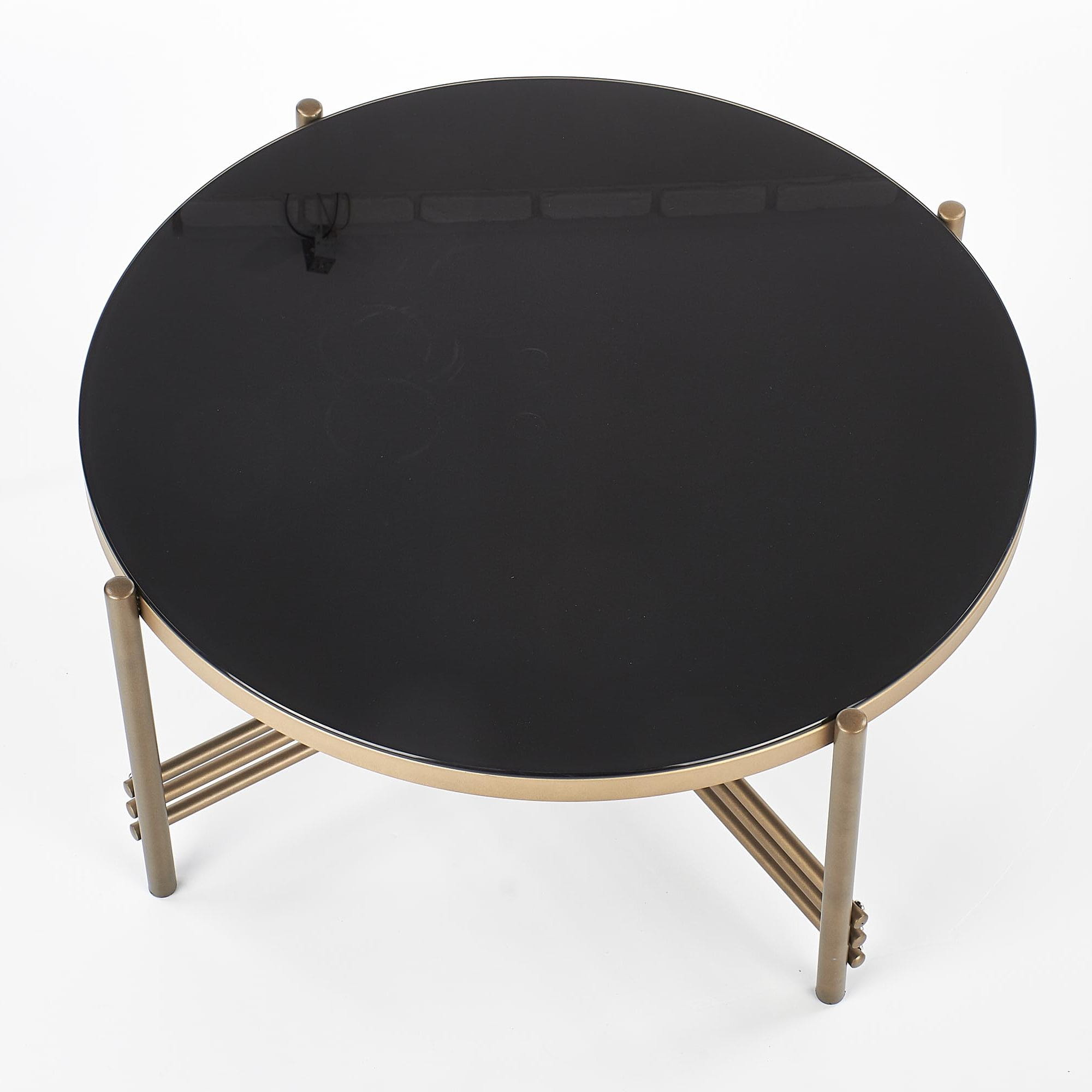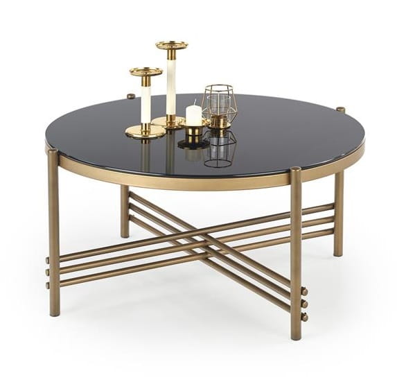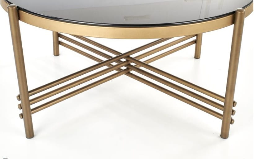 Szklana ława jest zawsze minimalistycznym rozwiązaniem! Nawet, gdy wyróżnia się oryginalnym designem, kolorystyką i zdobieniami, to dzięki zastosowanemu materiałowi cechuje ją niebywała lekkość. Optycznie - nie przytłacza! Jest subtelna i delikatna. Jednocześnie podkreśla ona nowoczesny charakter wystroju wnętrza, któremu dodatkowego szyku dodaje ciekawa, złota konstrukcja pod blatem okrągłego stolika. Ten okrągły stół dość solidnych wymiarów (średnica aż 80 cm) - prezentuje się bardzo efektownie!