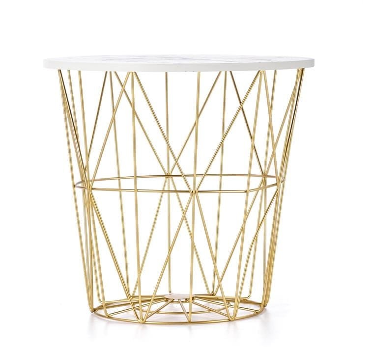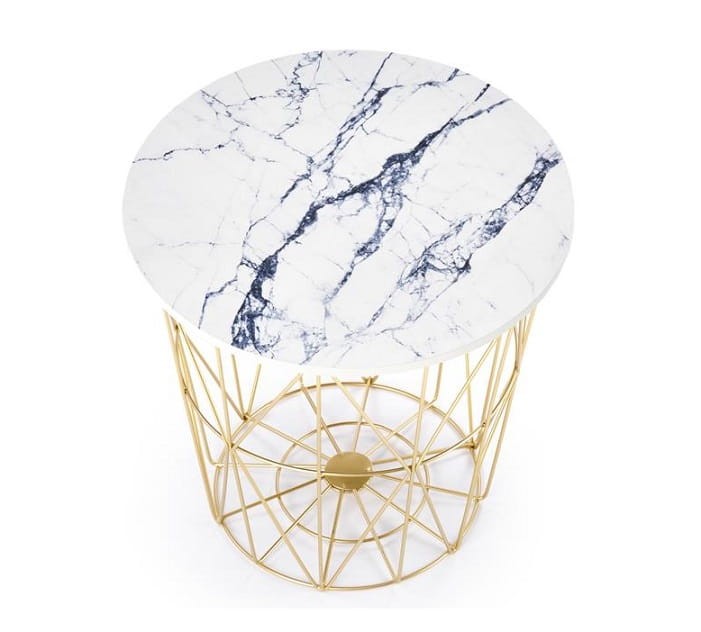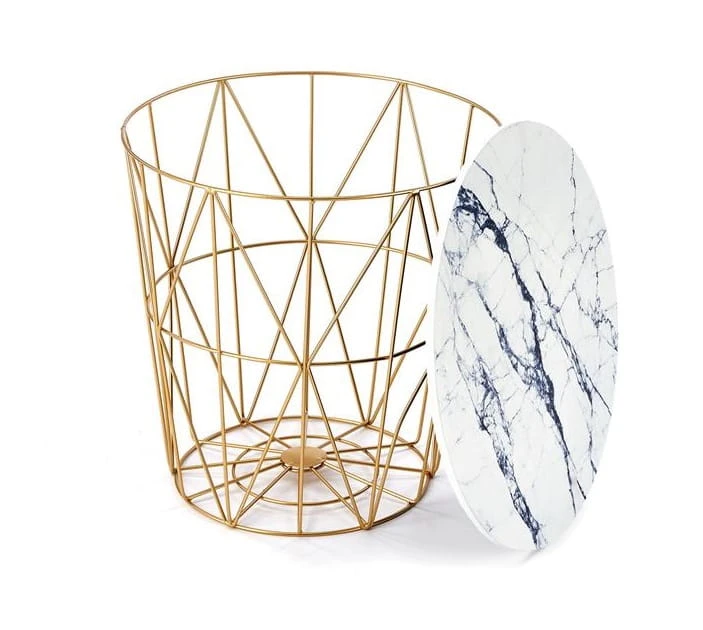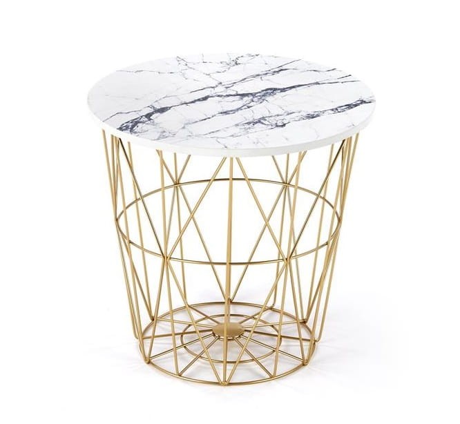 Okrągły złoty kosz z blatem marmur
