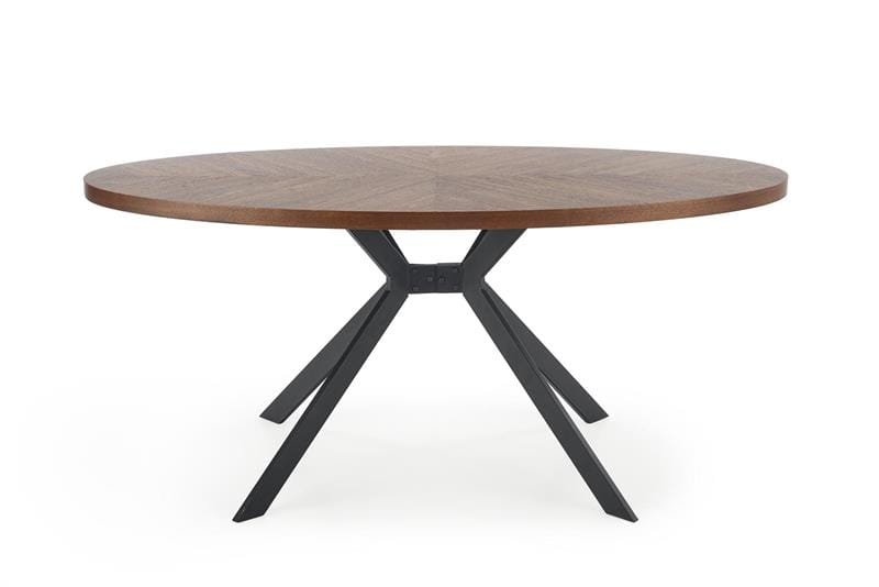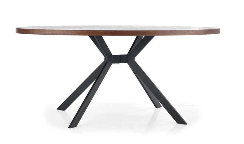 Jeśli wystrój Twojego salonu nawiązuje do stylu industrialnego lub klasycznego, stół owalny LORENCO jest trafioną propozycją, gdyż zawiera w sobie oba te występujące we wnętrzarstwie trendy. Drewniany, orzechowy blat z wyraźnie widocznymi słojami nawiązuje do klasyki z początków ubiegłego wieku, natomiast konstrukcja wsporcza to masywne, malowane na czarno płaskowniki wygięte w nowoczesne kształty z wyraźnie widocznymi połączeniami śrubowymi, reprezentujące czysty industrializm. Całość wygląda imponująco, dzięki czemu stół ten z pewnością stanie się doskonałym uzupełnieniem urządzonej ze smakiem jadalni lub stylowo umeblowanego salonu.
