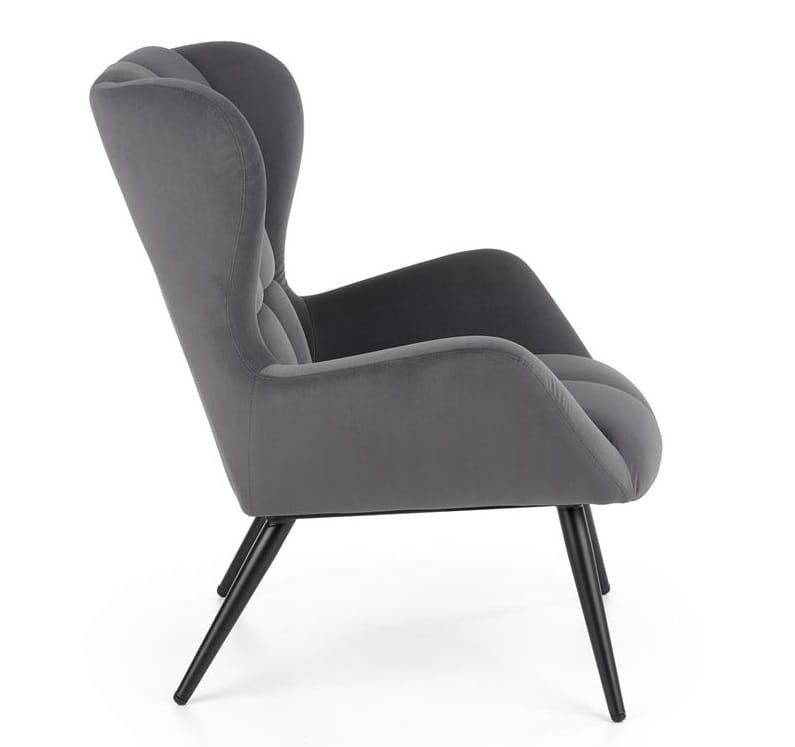 Miękka i przyjemna w dotyku tkanina welurowa to materiał, z którego wykonana jest piękna tapicerka naszego fotela. Jej ładny odcień szarego prezentuje się naprawdę wyjątkowo. Dekoracyjne pikowania na froncie fotela dodają mu sznytu, przyciągając wzrok każdego, kto spojrzy na ten wyjątkowy mebel do siedzenia.