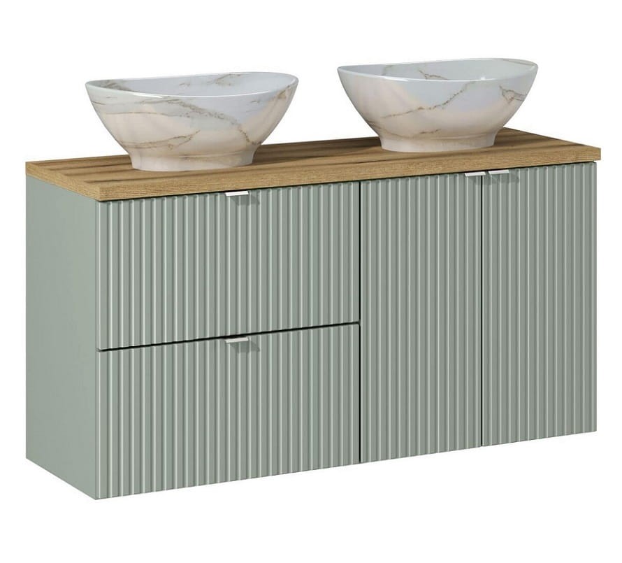 - Zestaw meblowy 120 cm w skład którego wchodzą: blat, 2 umywalki nadblatowe ceramiczne, dwie szafki pod umywalkę