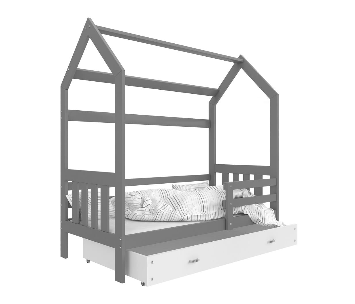 Szare łóżko domek dla dzieci z barierką 160x80 cm