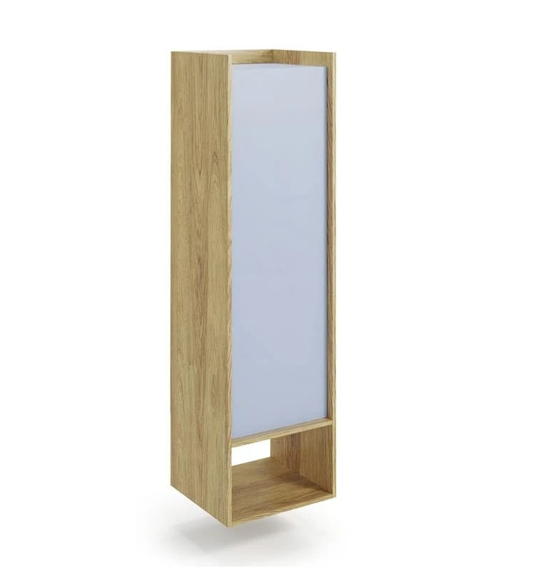 Wąski regał na ubrania z półkami Uzo hikora/niebieski