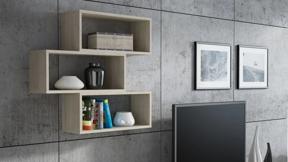 Proponowane półki ścienne z kolekcji KARO marki Deson.pl wykonane są z trwałej, odpornej na ścieranie, płyty laminowanej w kolorze dąb sonoma. Trzy modułowe prostokąty świetnie uzupełnią wnętrze wyposażone w meble młodzieżowe z kolekcji Eloo. Ale przy ich udziale można zaaranżować dowolne pomieszczenia! Każda półka wisząca jest tego samego wymiaru, dlatego doskonale nadają się one do stworzenia wizualnego efektu asymetrii uatrakcyjniającego wnętrze.