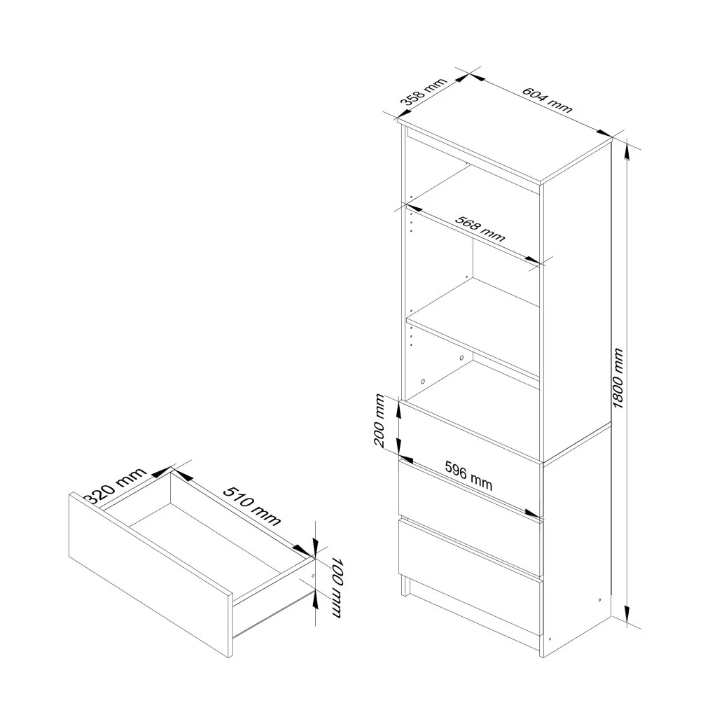 - Wymiary: szerokość - 60 cm, wysokość - 180 cm, głębokość - 35 cm,
