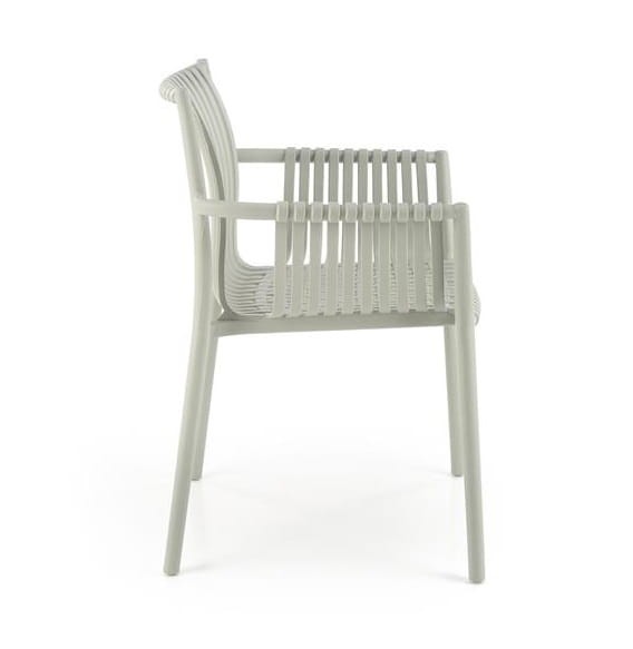 Krzesło z podłokietnikami Haggi to harmonia nowoczesnego designu z funkcjonalnością. Wykonane z wysokiej jakości polipropylenu, zachwyca swoją prostotą i elegancją, co sprawia, że doskonale komponuje się z różnymi stylami aranżacji. Dzięki ergonomicznemu kształtowi oraz solidnym podłokietnikom, krzesło Haggi zapewnia wygodę nawet podczas długich godzin relaksu spędzonych na zewnątrz. Niezależnie od tego, czy spędzasz czas na tarasie czy w ogrodzie, nasze krzesło zapewni Ci niezapomniane chwile pełne komfortu.