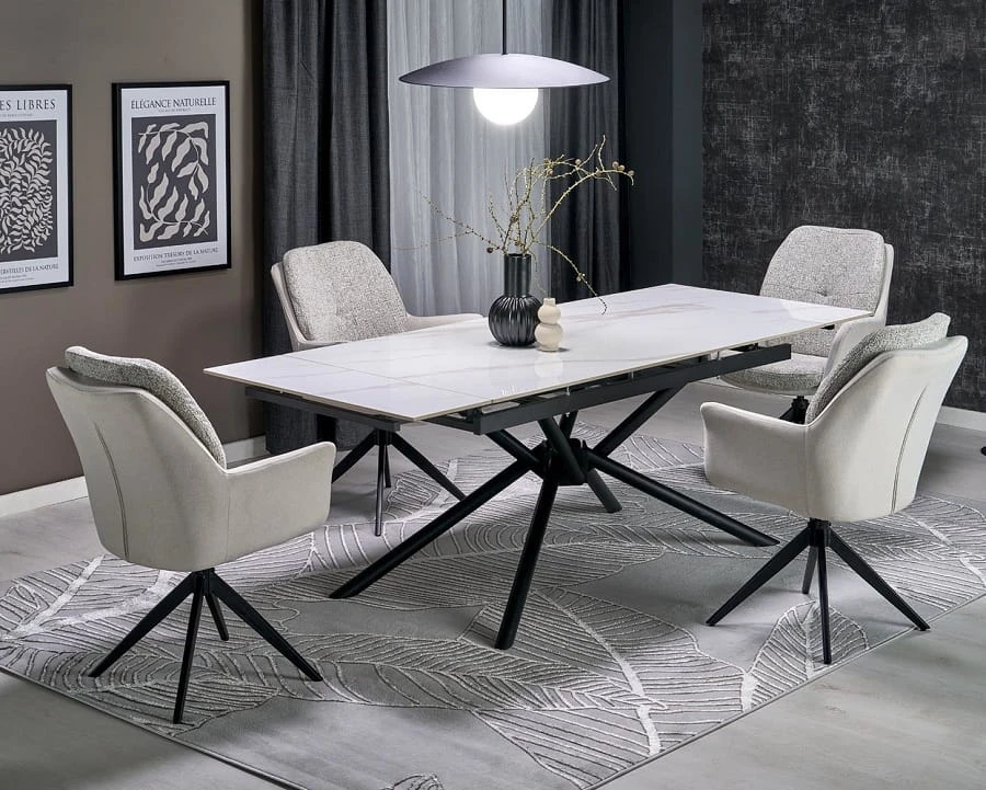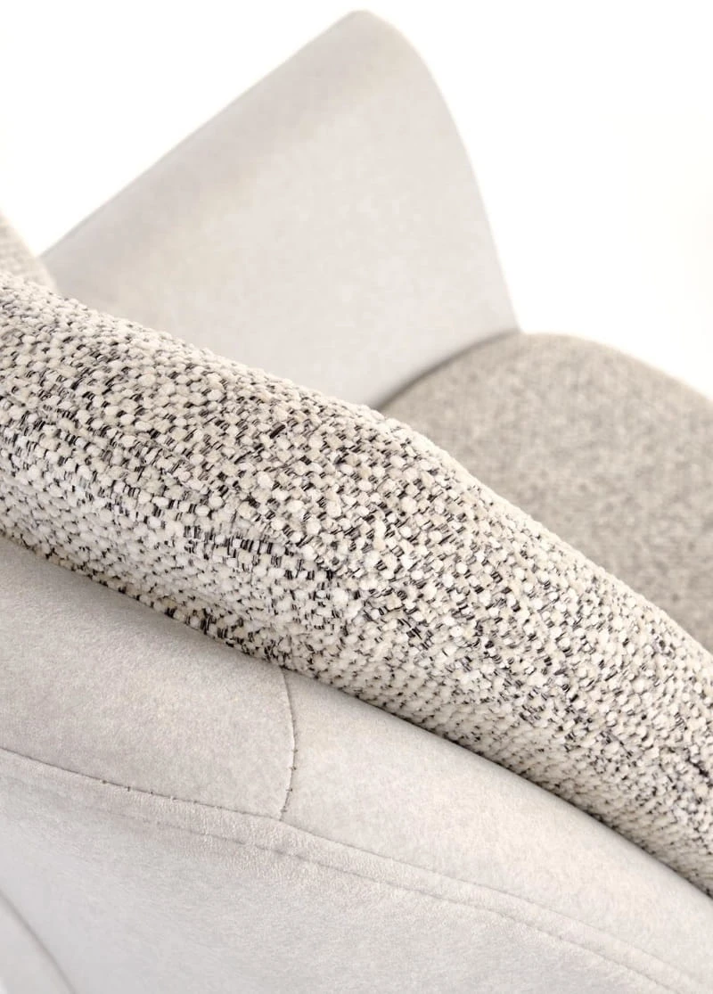 Tapicerka w dwóch subtelnie współgrających odcieniach szarości sprawia, że krzesło Loui prezentuje się niezwykle elegancko i harmonijnie. Czarny, metalowy stelaż dodaje całości nowoczesnego charakteru i podkreśla lekko loftowy styl mebla. To obrotowe popielate krzesło do jadalni znakomicie odnajdzie się zarówno w jasnych, minimalistycznych wnętrzach, jak i bardziej wyrazistych aranżacjach z elementami drewna czy metalu.
