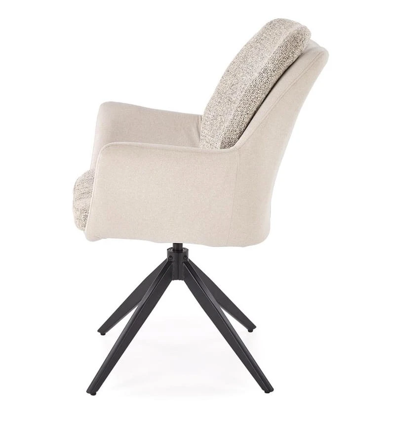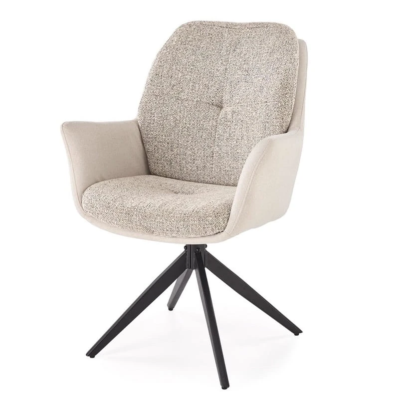 Krzesło do jadalni z podłokietnikami Loui zachwyca miękkim siedziskiem z wbudowaną poduszką, które zapewnia maksymalny komfort zarówno podczas codziennych posiłków, jak i dłuższych spotkań przy stole. Obrotowe siedzisko dodaje funkcjonalności, ułatwiając poruszanie się bez konieczności odsuwania krzesła – to szczególnie praktyczne w mniejszych przestrzeniach. Podłokietniki delikatnie otulają sylwetkę, oferując wsparcie i wygodę, a wszystko to w pięknym beżowym odcieniu, który rozjaśnia wnętrze i nadaje mu przytulności.
