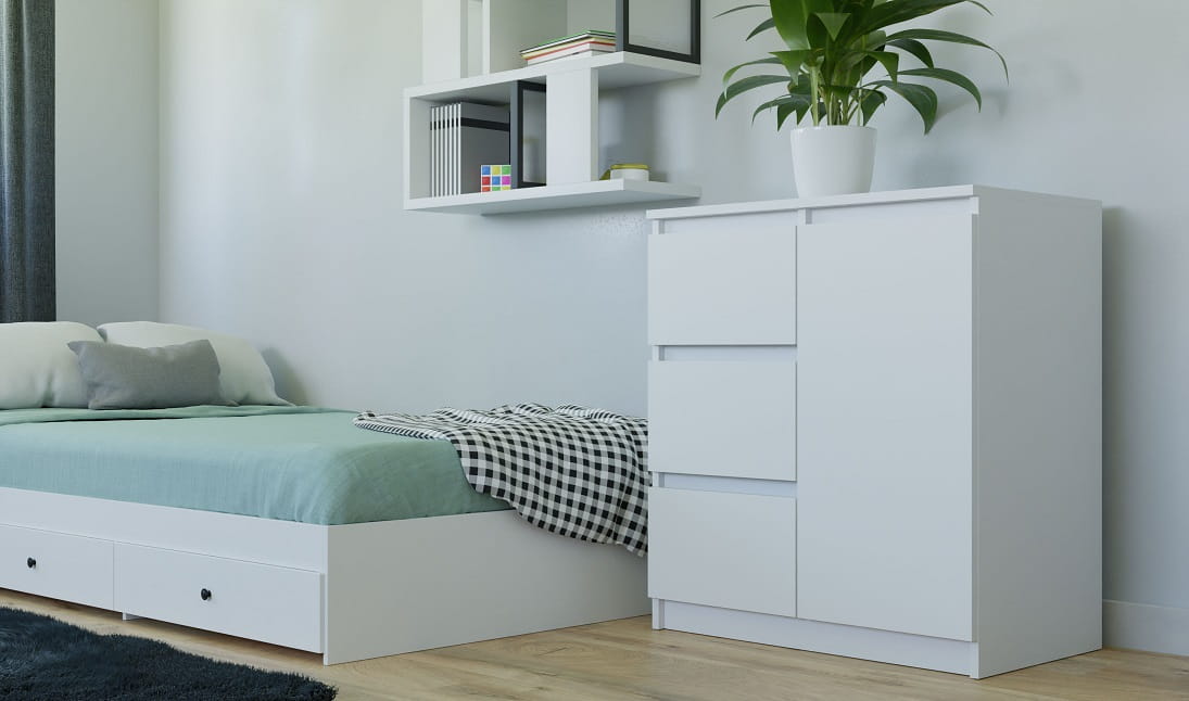 Prosta komoda na ubrania z szufladami biel