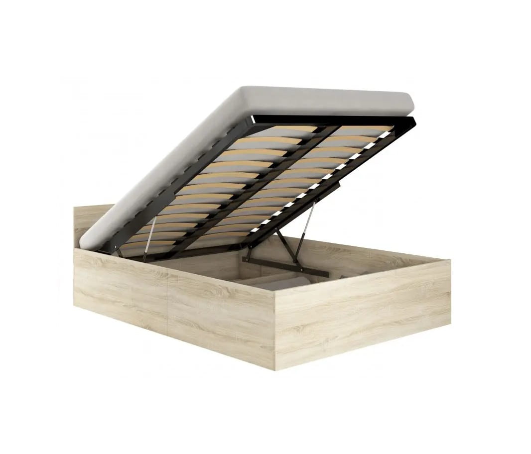 Łóżko Amato stworzone zostało jako wyposażenie niewielkiej sypialni lub pokoju młodzieżowego. To stabilny i wytrzymały mebel wykonany z wysokiej jakości płyty meblowej, zaopatrzony w podnoszony stelaż z płaskich, odpowiednio uformowanych brzozowych listew. Łóżko Amato posiada również obszerny, funkcjonalny pojemnik na pościel, który sprzyja dobremu zagospodarowaniu przestrzeni w pomieszczeniu. Dzięki niemu mebel będzie służyć nie tylko do spania, ale też jako miejsce na przechowywanie poduszek, kołdry czy ciepłych koców. Wystarczy unieść drewniany stelaż, co dzięki sprawnie działającym gazowym siłownikom zrobimy dosłownie jedną ręką, by mieścić zbędne rzeczy.