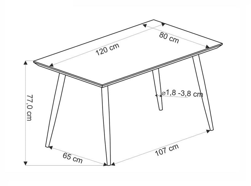 - Wymiary stołu: wysokość - 77 cm, szerokość - 80 cm, długość - 120 cm