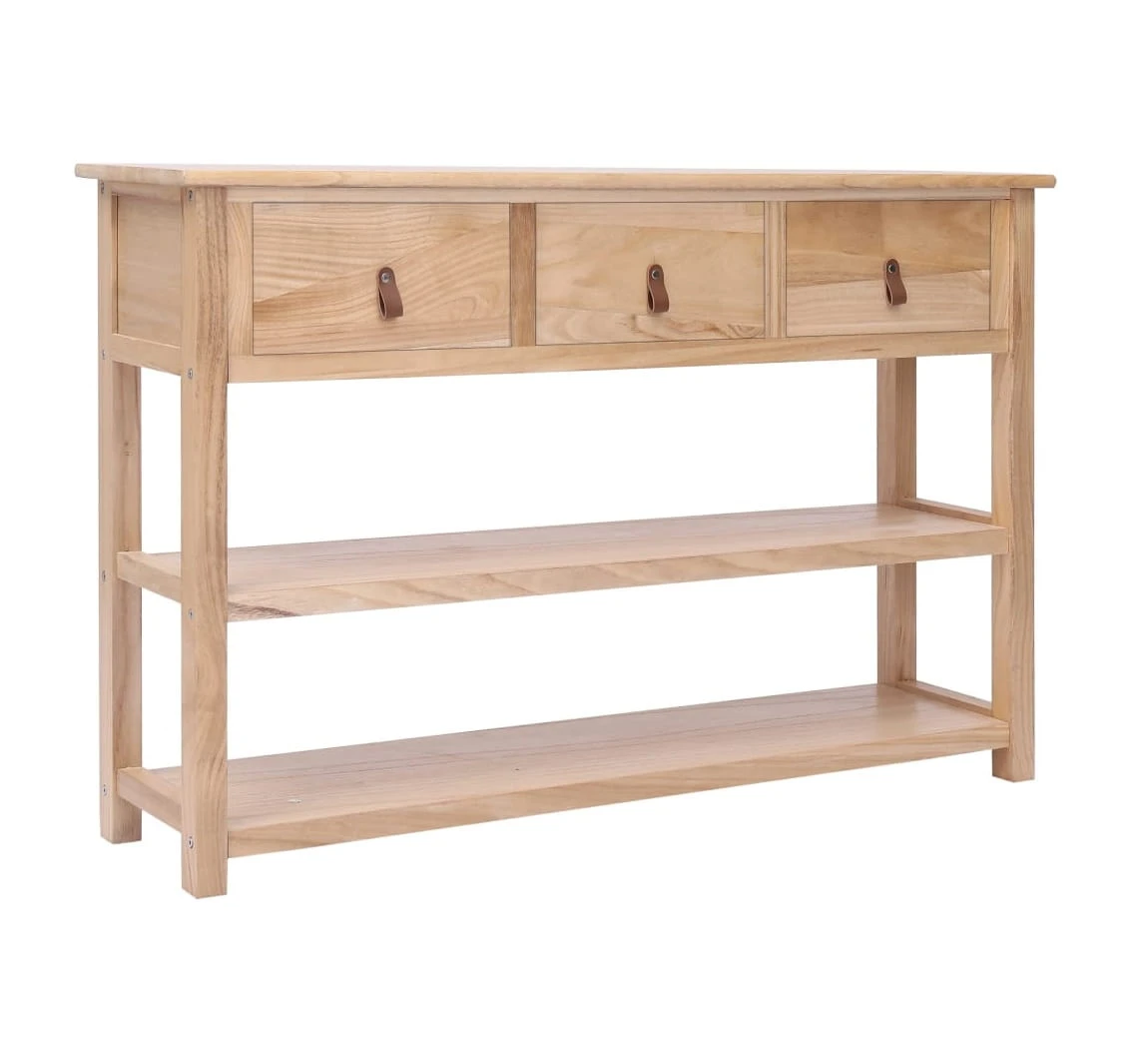 Oferowana przez nas konsola Damir z powodzeniem może zastąpić komodę w salonie, ale również podręczny stolik stojący w przedpokoju. Nic nie stoi na przeszkodzie, by znalazła się w łazience, jeśli jej wystrój pasować będzie do stylu tego mebla. Solidny blat jest idealny do eksponowania przedmiotów dekoracyjnych, takich jak wazony lub rośliny doniczkowe, natomiast trzy szuflady i dwie półki zapewniają dużo miejsca na przechowywanie różnych drobiazgów.