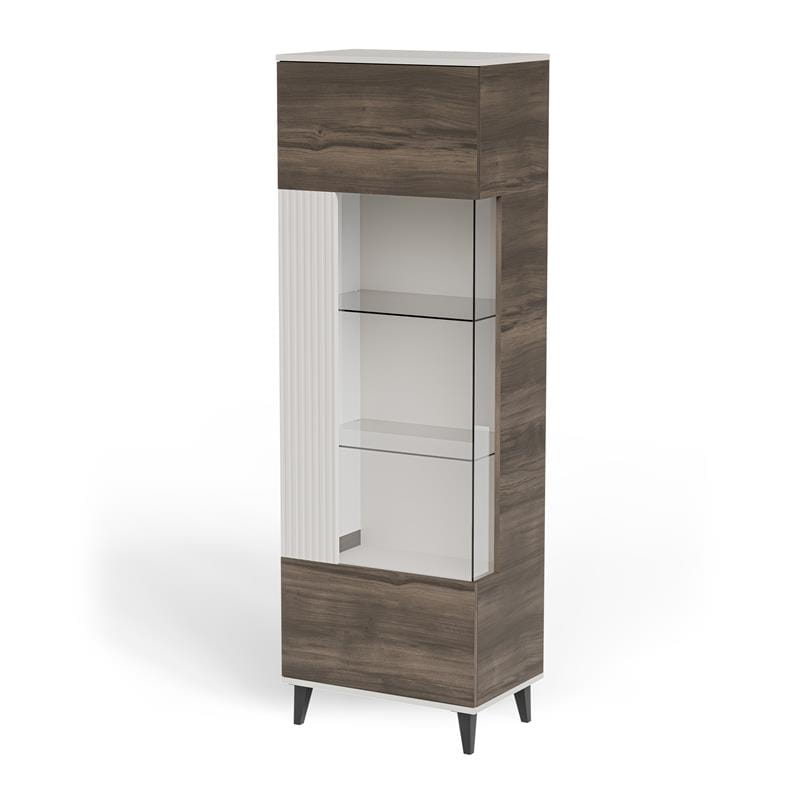Przeszklona witryna z półkami kaszmir/orzech 182 cm