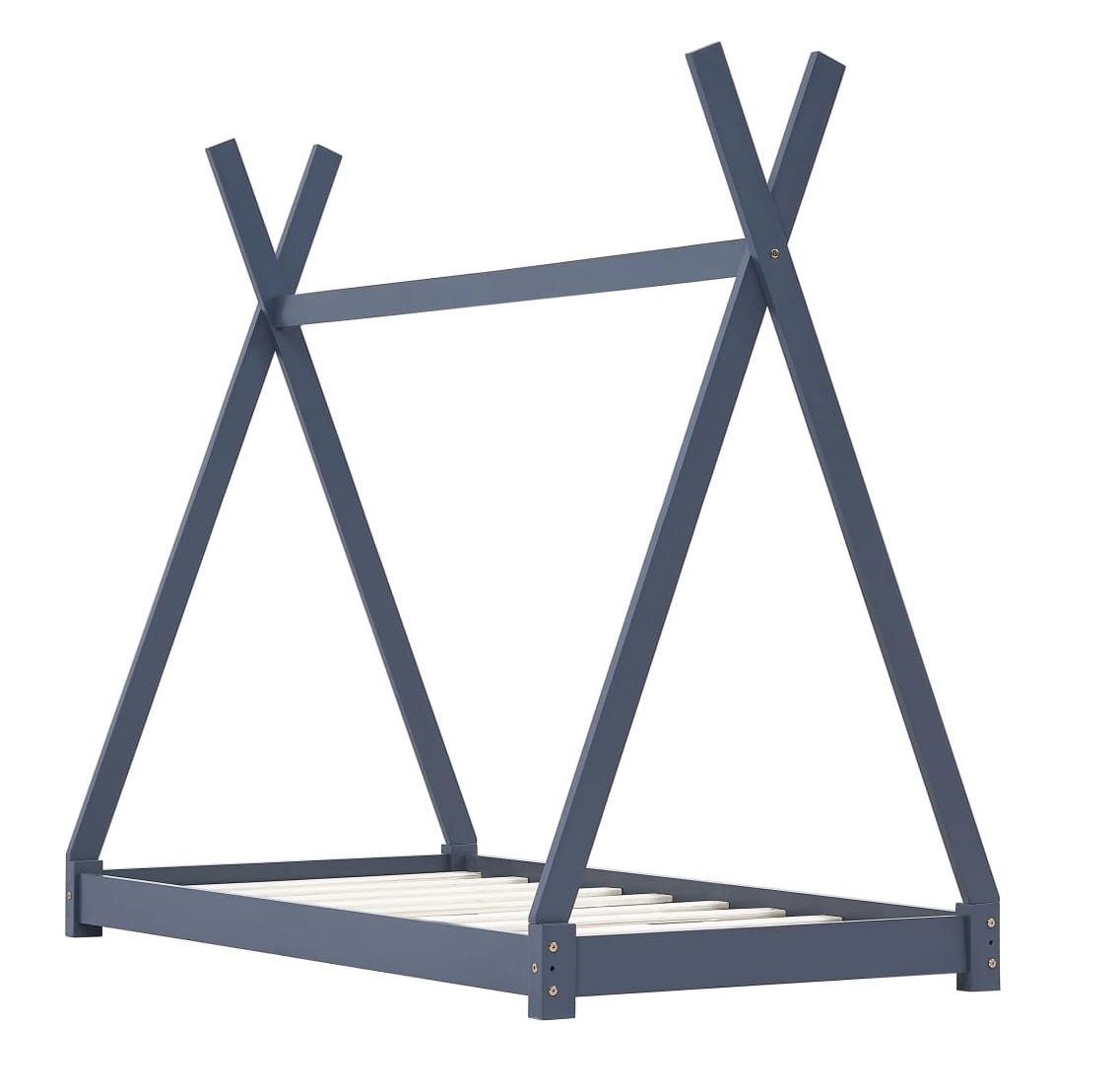 Krzyżowa rama łóżka inspirowana indiańskim namiotem tipi to prawdziwy hit pokoi dziecięcych.