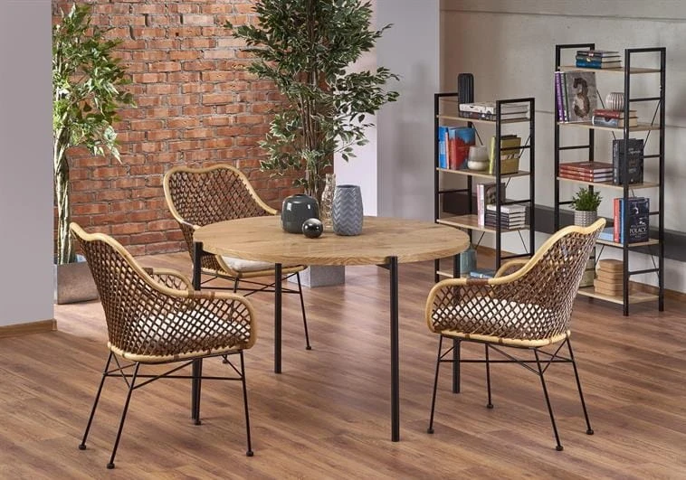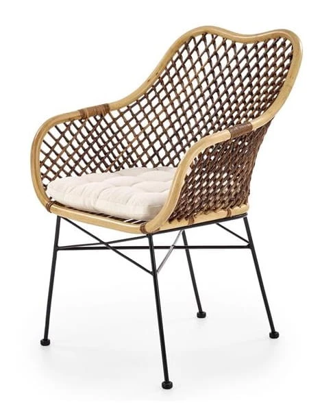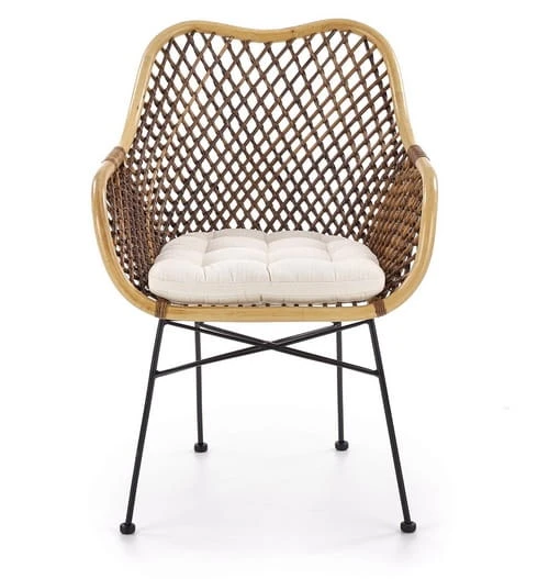 Design krzesła Mazael to bezpretensjonalne połączenie nowoczesności i klasyki. Niebanalnie metalowe nogi krzesła są wyjątkowo stabilne i wpisują się charakterem w loftowy, industrialny styl. Ale na równą uwagę zasługuje oparcie o modnym, uniwersalnym charakterze. Materiał krzesła to rattan naturalny, co jest dodatkowym atutem, pozwalającym użytkować krzesła również na zewnątrz.