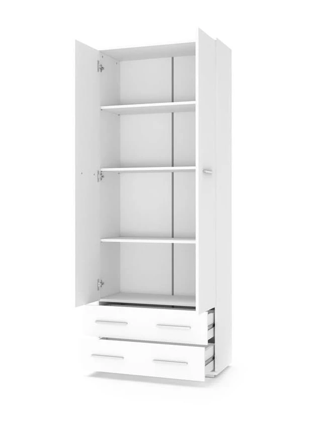Wąska szafa z półkami z serii Kris to niebagatelna powierzchnia do zagospodarowania! Zmieści się w niej cała garderoba! Posiada bowiem funkcjonalne półki, a także szuflady. Na praktycznych półkach można segregować i układać ubrania, w szufladach zaś bieliznę oraz akcesoria. Oczywiście taką szafę można umieścić także w salonie, a nawet w łazience! Tu posłuży jako miejsce do przechowywania szlafroków, ręczników łazienkowych i pościeli.