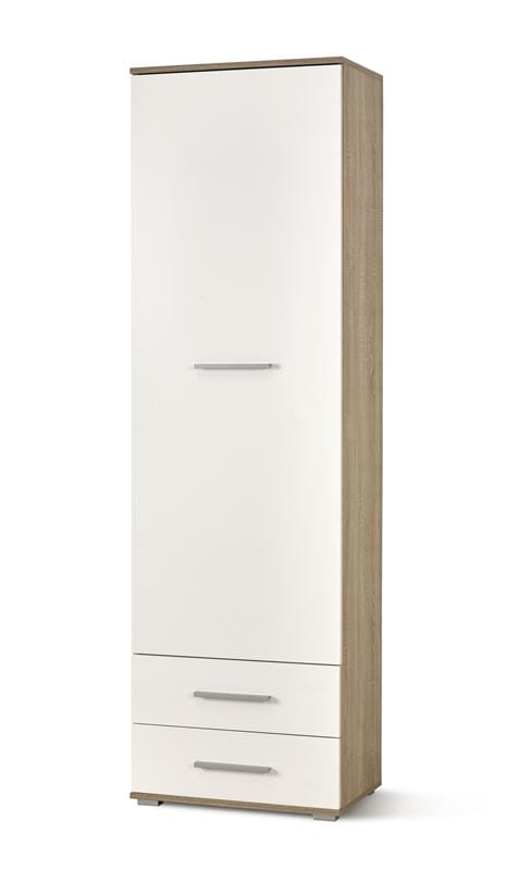 Wąska szafa Kris jest wyjątkowo pojemna, a biały z dąb sonoma model cechuje się tym, że jest nienachalny. Pasuje do pomieszczeń urządzonych w stylu prowansalskim, skandynawskim i minimalistycznym. Wspaniale sprawdzi się czy to w klimatycznie zaaranżowanej sypialni czy to w przedpokoju! Służy nie tylko do racjonalnego przechowywania ubrań, akcesoriów i innych rzeczy. Zdobi wnętrze, optycznie dodaje mu przestrzeni i doświetla ją.