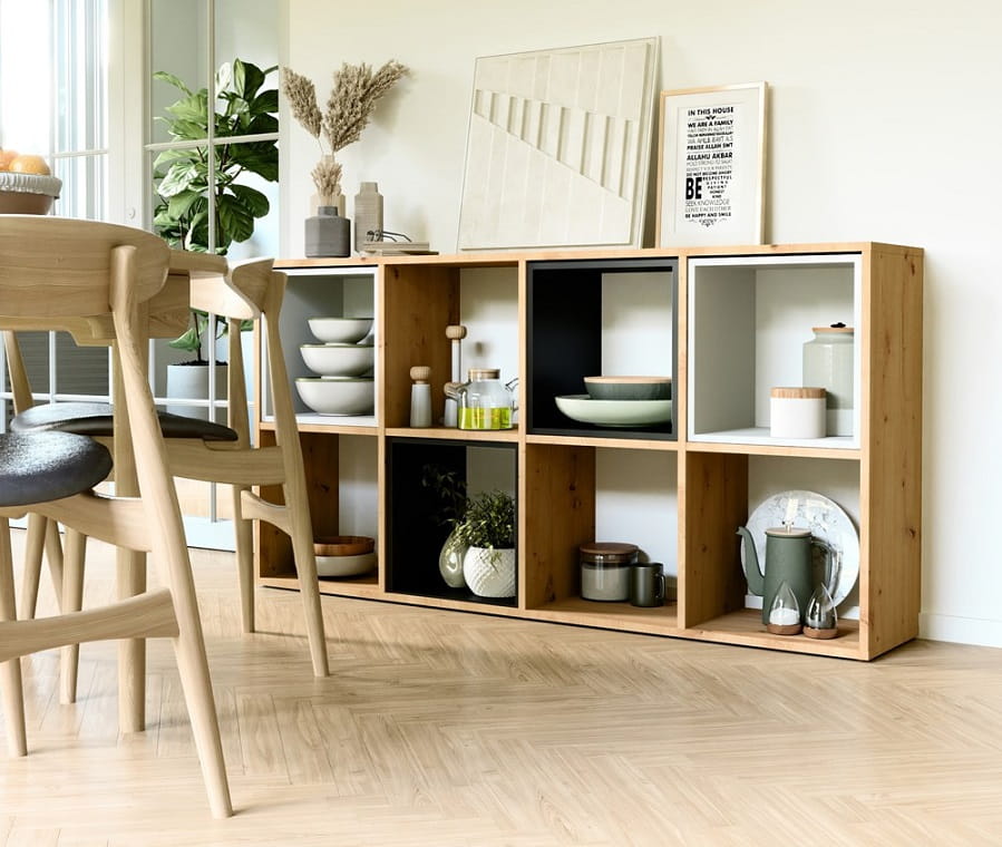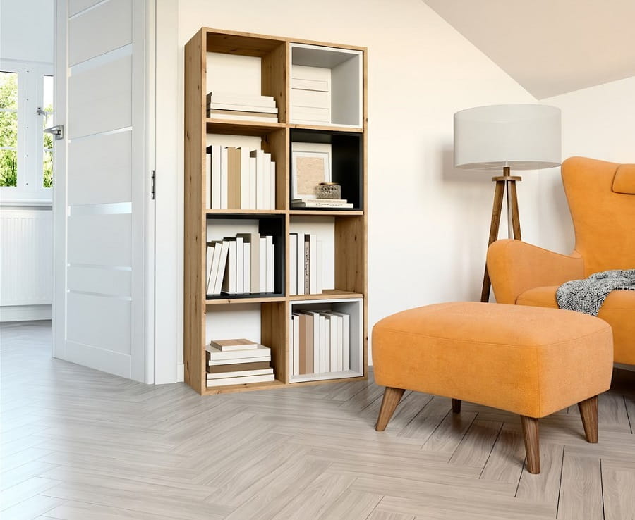 Nasz mebel wykonany jest z laminowanej płyty wysokiej jakości, co zapewnia mu to doskonałą stabilność i trwałość. Półki w rozmiarze 34,5x34,5 cm gwarantują temu meblowi naprawdę sporą pojemność! Umożliwiają one przechowywanie i segregację! Można trzymać tu bibeloty, galanterię, bieliznę, zabawki albo kosmetyki. A gdy regał umiejscowiony jest w gabinecie - również dokumenty. Tak naprawdę zależy to od przeznaczenia i miejsca, w którym ma on spełniać swoje funkcje! A tutaj pomysłów można mieć naprawdę mnóstwo!