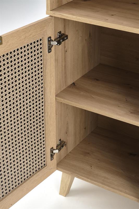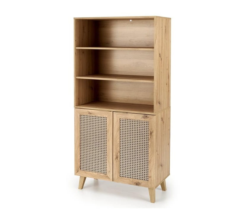 Do Państwa dyspozycji oddajemy pojemny regał z drzwiczkami z kolekcji Semali. Ten designerski mebel świetnie dopełni aranżację wnętrza w stylu boho i minimalistycznym. Ustawione na nim książki czy też wyszukane bibeloty z pewnością podkreślą wystrój przytulnie wyposażonego mieszkania lub domu.