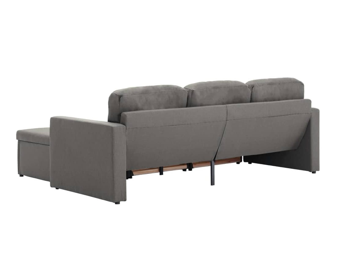 Rozkładana sofa ma grube, miękkie, wygodne wypełnienie. Poduszki dekoracyjne zapewniają użytkownikom dodatkowy komfort. Ponadto tapicerowana jest ona przyjemną w dotyku tkaniną, którą łatwo utrzymać w czystości. To również zasługa uniwersalnej kolorystyki.