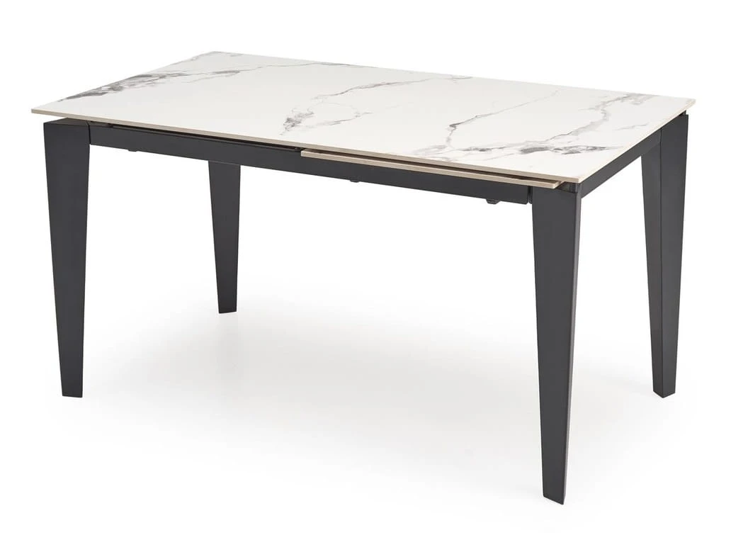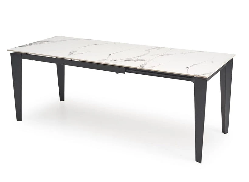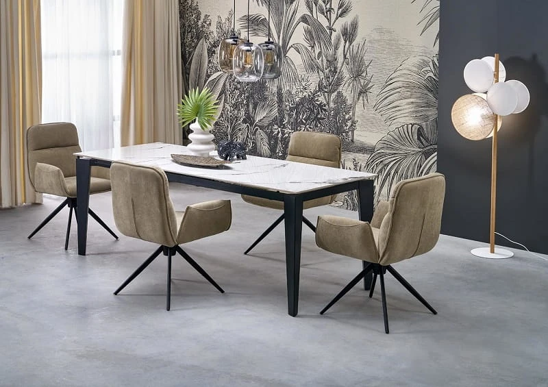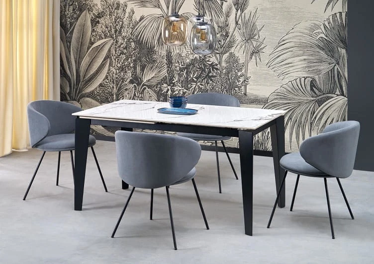 Duży stół do jadalni Felix wyróżnia się unikalnym połączeniem materiałów najwyższej jakości. Blat wykonany ze spieku kwarcowego z wzorem inspirowanym białym marmurem nadaje meblowi ekskluzywnego charakteru, jednocześnie zapewniając niezwykłą trwałość i odporność na uszkodzenia. Zwężane ku dołowi metalowe nogi nie tylko gwarantują stabilność konstrukcji, ale również wprowadzają do wnętrza modny, loftowy akcent, który idealnie komponuje się ze współczesnym wystrojem.