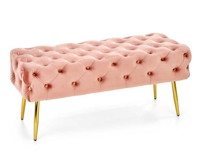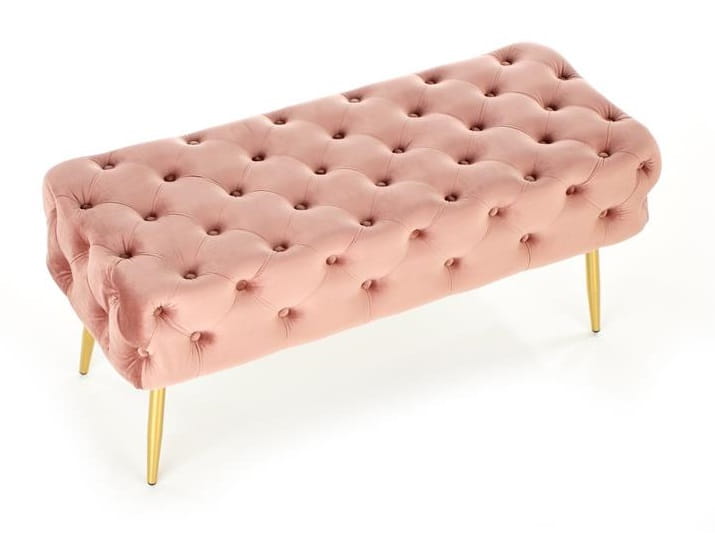 Mebel obity został tkaniną typu Velvet, dzięki czemu siedzisko zyskuje wyjątkową miękkość i ekskluzywny design. Głęboko przeszyte guziki dodają ławce wyjątkowego stylu i oryginalności. Różowe siedzisko wygląda delikatnie i subtelnie uzupełni wnętrze.