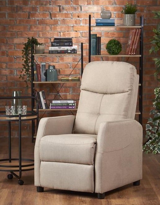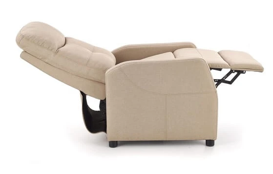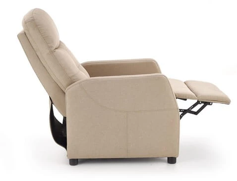 Beżowy fotel rozkładany wypoczynkowy podnóżek