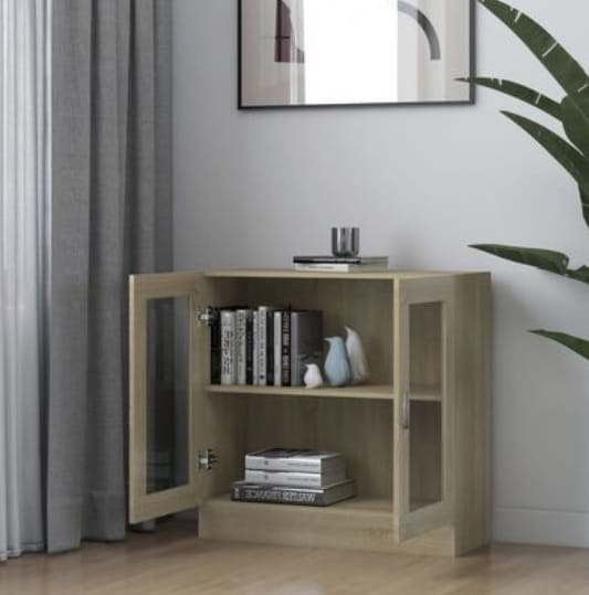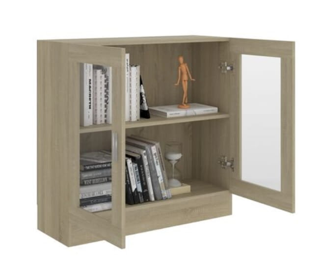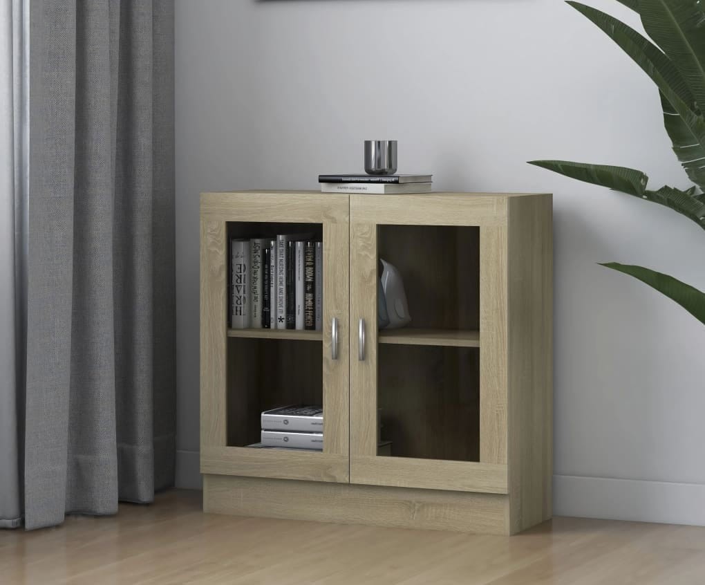 Witryna Credens sprawdzi się jako funkcjonalny, dodatkowy mebel, służący do przechowywania, ale na uwagę zasługuje również jej wykonanie. Wykorzystano tutaj bowiem takie materiały jak płyta meblowa wysokiej jakości i szkło. Sprawdzone, łatwe do utrzymania w czystości. Mebel wykończono w w kolorze dąb sonoma, dzięki czemu prezentuje się bezpretensjonalnie, acz stylowo!