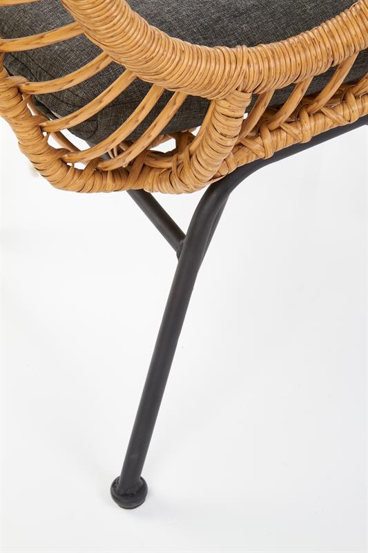 Na Państwa uwagę zasługuje wspaniały projekt tego mebla, jak również dbałość o najmniejsze detale przy jego wykonaniu. Pięknie wyprofilowane oparcie i podłokietniki nadają temu krzesłu opływowych kształtów. Plecionka w kolorze drewna perfekcyjnie koresponduje z popielatą poduchą i oczywiście ze smukłymi nóżkami krzesła, zrobionymi ze stali malowanej metodą proszkową.