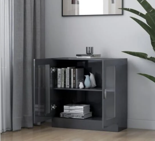 Szafka z przeszkleniem, gablota szary połysk