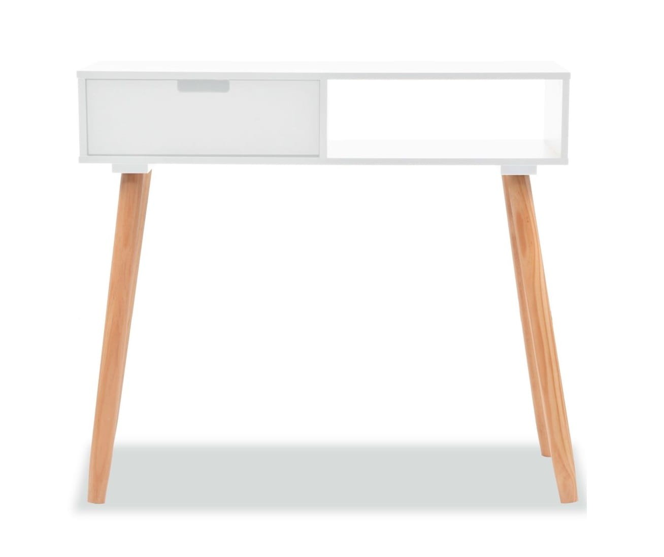 Skandynawska konsola z szufladą na drewnianych nóżkach