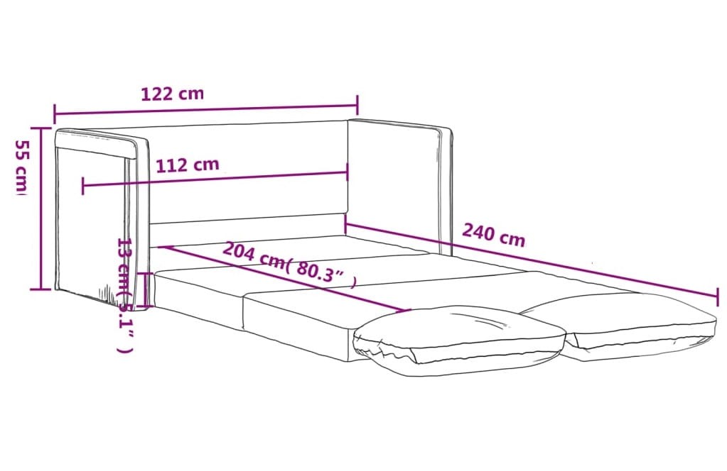 - Łóżko (po rozłożeniu): szerokość - 122 cm, długość - 204 cm 55 cm