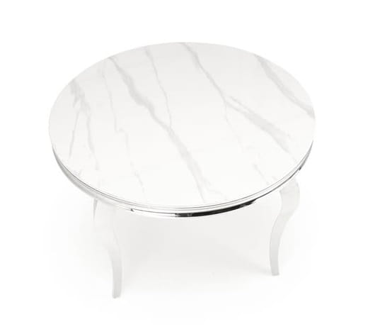 Srebrny stół z okrągłym blatem biały marmur