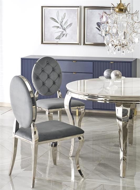 Srebrny stół Blanxy to esencja stylu glamour, który łączy w sobie luksus i wyrafinowanie. To więcej niż tylko mebel – to wyrazisty element dekoracyjny, który przyciągnie uwagę każdego gościa i podkreśli Twój wyjątkowy gust oraz zmysł estetyczny. Idealny do eleganckiej jadalni, salonu lub nowoczesnej kuchni, stanie się centralnym punktem każdego pomieszczenia.