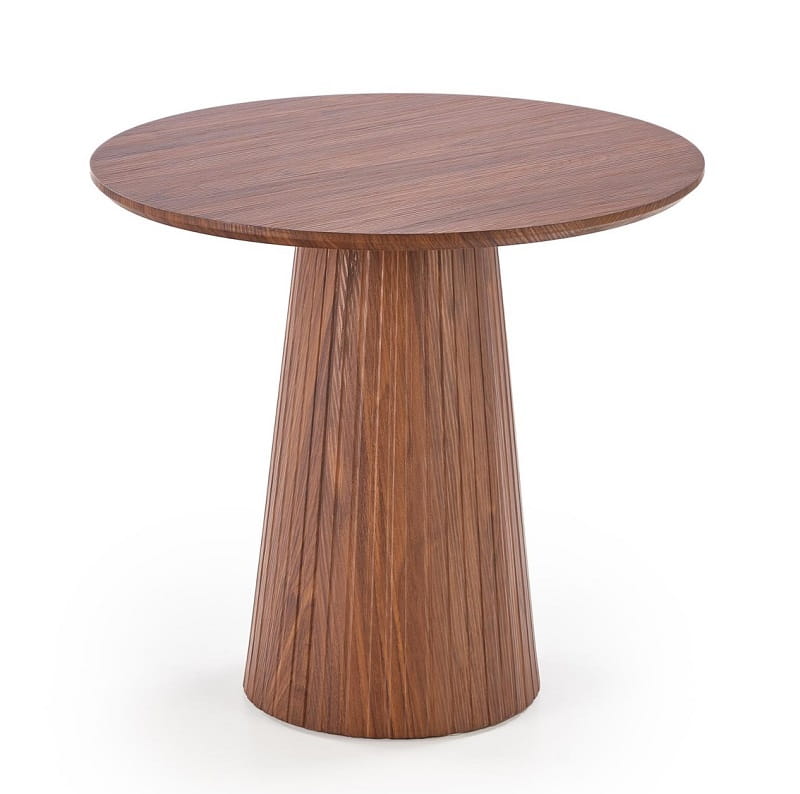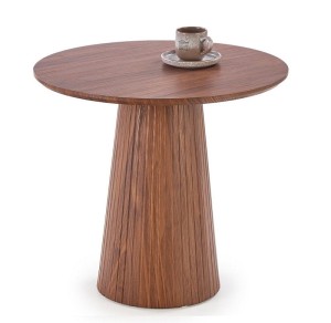 Ten wyjątkowy stolik kawowy na nodze o średnicy 60 cm i wysokości 55 cm został zaprojektowany z myślą o miłośnikach nowoczesnego designu, którzy cenią sobie przemyślane detale. Okrągły blat w ciepłym, orzechowym kolorze tworzy doskonałą powierzchnię do postawienia ulubionych książek, aromatycznej kawy czy dekoracyjnych akcesoriów, które nadają wnętrzu osobisty charakter. Dzięki kompaktowym wymiarom idealnie sprawdzi się nawet w mniejszych salonach, nie przytłaczając przestrzeni.
