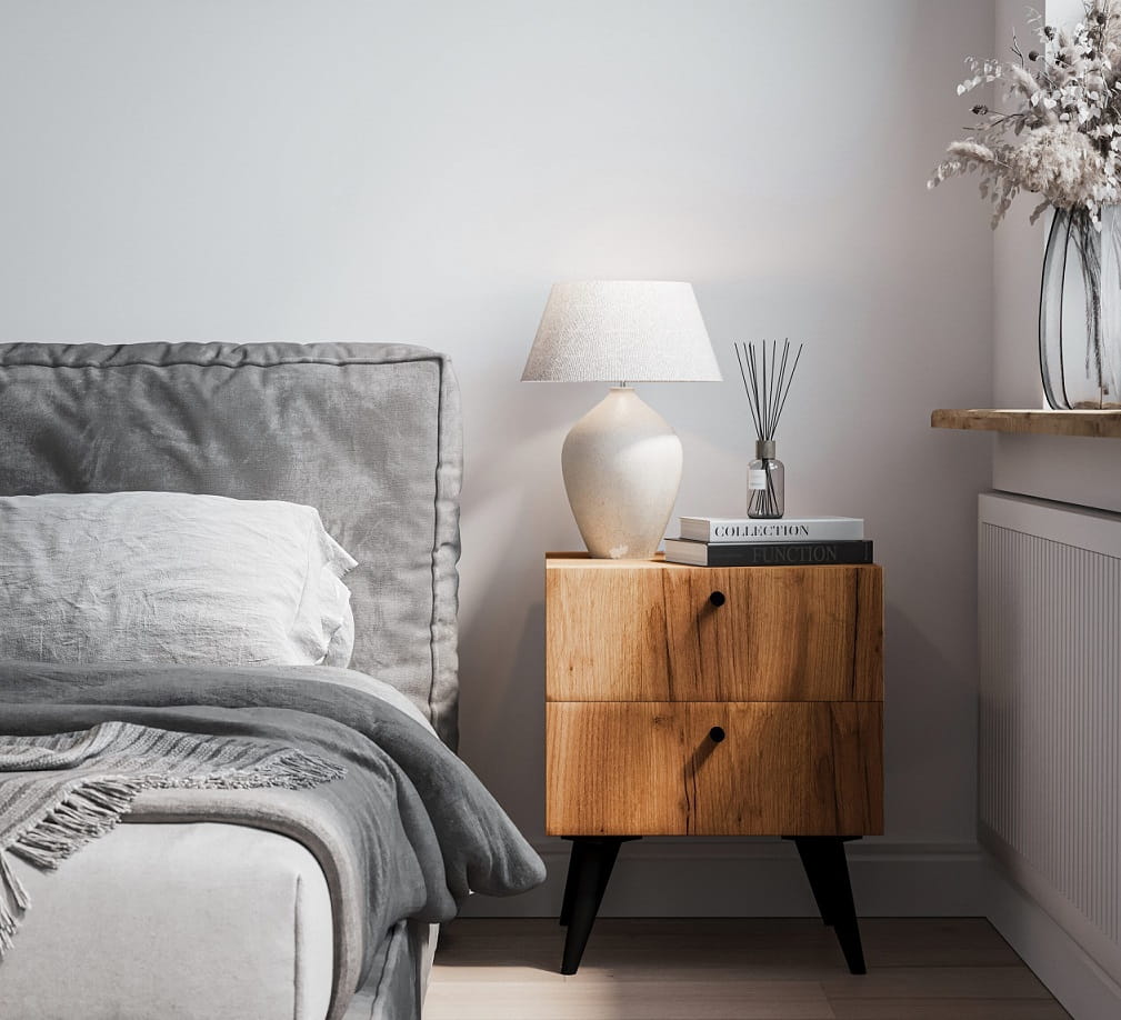 Stolik nocny z szufladami Lumina. Elegancka harmonia w Twoim wnętrzu.
