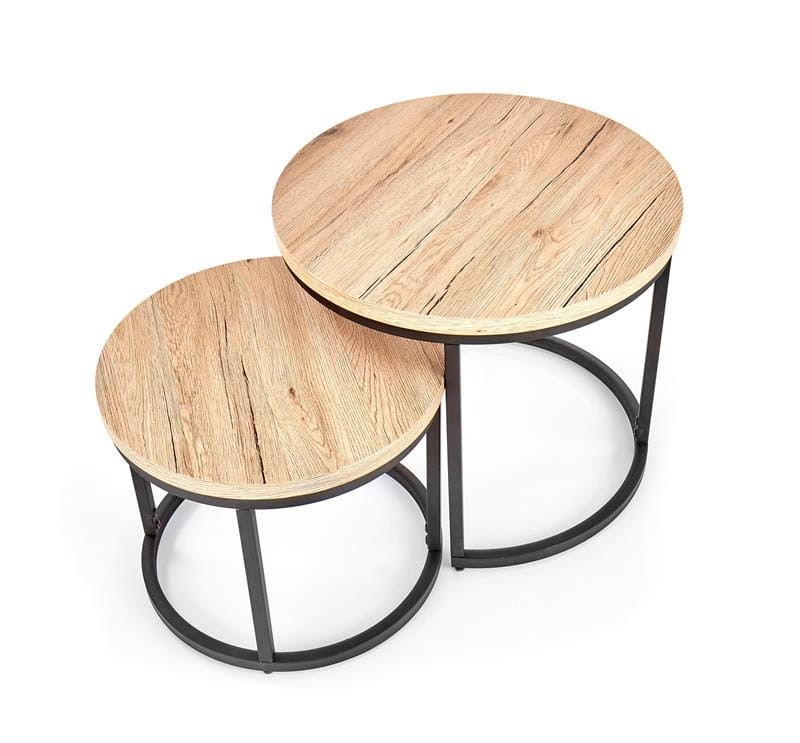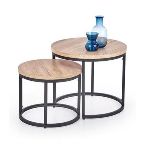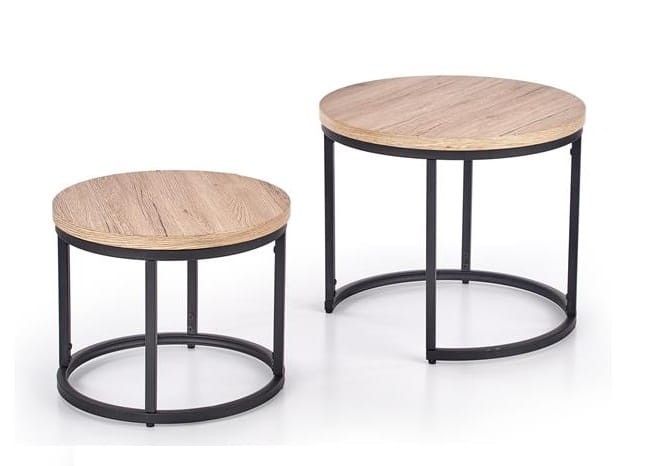Komplet stolików Rose wyróżnia się praktycznym wymiarem i loftowym charakterem. Dominującym elementem mebla jest okrągły blat w pięknym kolorze san remo. Tutaj wytrzymały i stabilny, stalowy stelaż podkreśla prostotę i surowość. W związku z tym mebel jest prosty, klasyczny, a zarazem ultra nowoczesny. Dodatkowym atutem jest mniejszy stolik, który można schować pod większy i oszczędzić miejsce w salonie.