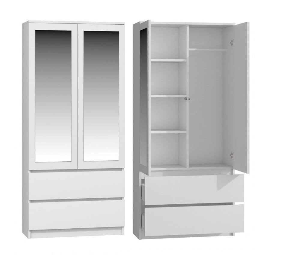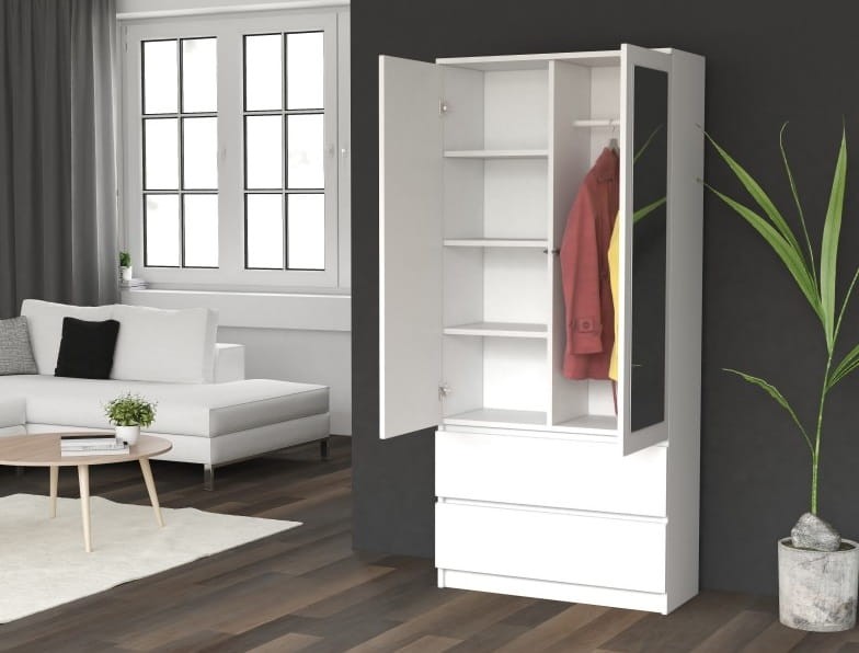 Biała szafa do przedpokoju z lustrem 90x180 cm