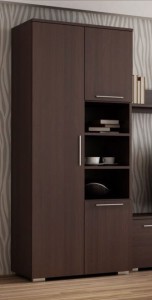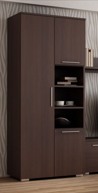 Nasza szafa doskonale sprawdzi się także w biurze - bez problemu pomieści dokumenty, segregatory, pieczątki i inne biurowe niezbędniki. Możesz go także użyć w swojej garderobie. Twoje piękne ubrania będą wyeksponowane na wieszakach oraz półkach i już nigdy nie trzeba będzie ich szukać. Cechy charakterystyczne tego produktu to przede wszystkim solidne wykonanie oraz nowoczesny wygląd. Kolor wenge dodatkowo podkreśla jego minimalistyczną konstrukcję oraz ożywia każde wnętrze.