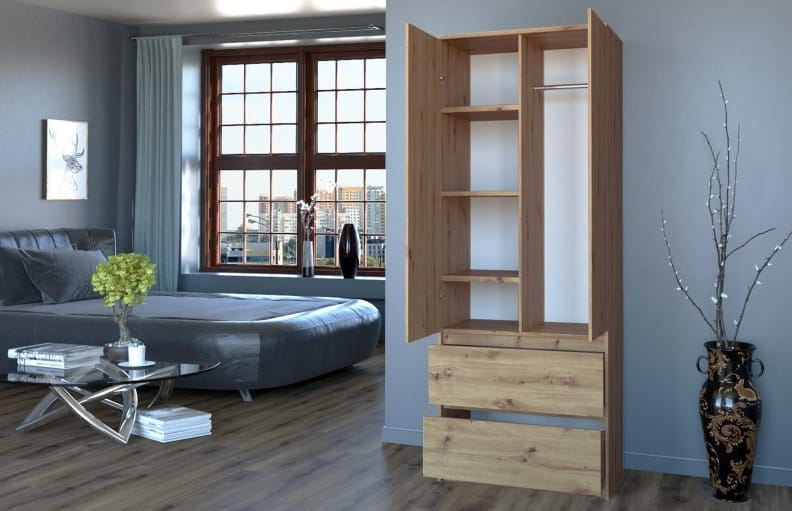 Szukasz oryginalnego a zarazem funkcjonalnego mebla do przechowywania? Nie masz gdzie trzymać ważnych dokumentów w biurze? A może potrzebujesz funkcjonalnej szafy do sypialni? Koniecznie poznaj naszą wielofunkcyjną szafę z serii Nesto. Jest to nowoczesny mebel, który bez problemu wkomponuje się w każde nowocześnie urządzone wnętrze. Pojemna szafka pozwoli na uporządkowanie przedmiotów w sypialni, pokoju dziennym a także w pokoju dziecięcym. Ten niezastąpiony mebel posiada powierzchnię zamkniętą, w której bez problemu umieścisz ubrania oraz 2 pojemne szuflady - na bieliznę lub inne niezbędne drobiazgi.