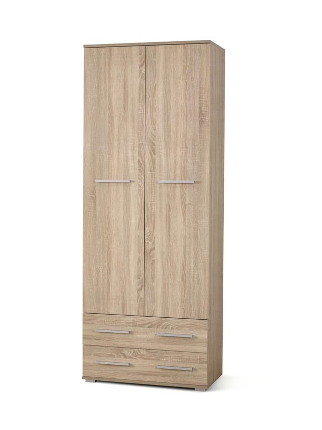 Szafa z półkami Kris jest wyjątkowo pojemna, a kolor dąb sonoma cechuje się tym, że jest nienachalny. Pasuje do pomieszczeń urządzonych w stylu prowansalskim, skandynawskim i minimalistycznym. Wspaniale sprawdzi się czy to w klimatycznie zaaranżowanej sypialni czy to w przedpokoju! Służy nie tylko do racjonalnego przechowywania ubrań, akcesoriów i innych rzeczy. Zdobi wnętrze, optycznie dodaje mu przestrzeni i doświetla ją.