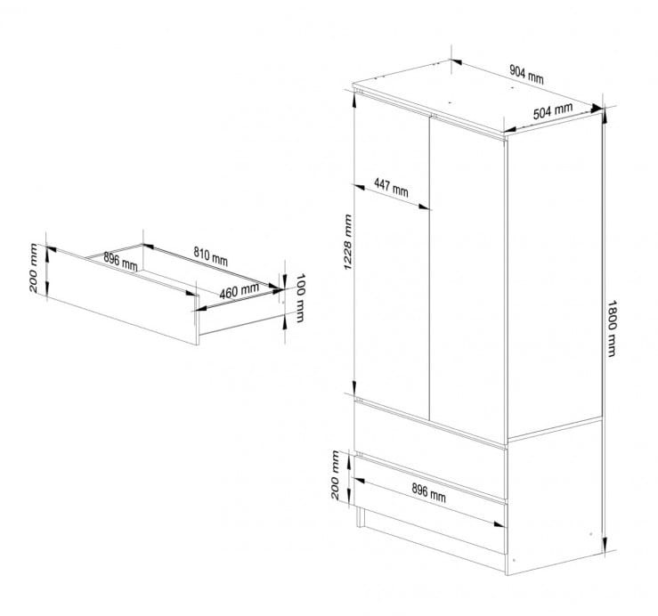 Do przedpokoju, do sypialni, do pokoju nastolatka. Dwudrzwiowa szafa z serii Winma to garderoba, której liczne półki oraz wieszak ukryte są są za podwójnymi drzwiami. Dodatkowym atutem w szafie są pojemne szuflady na spodzie mebla.