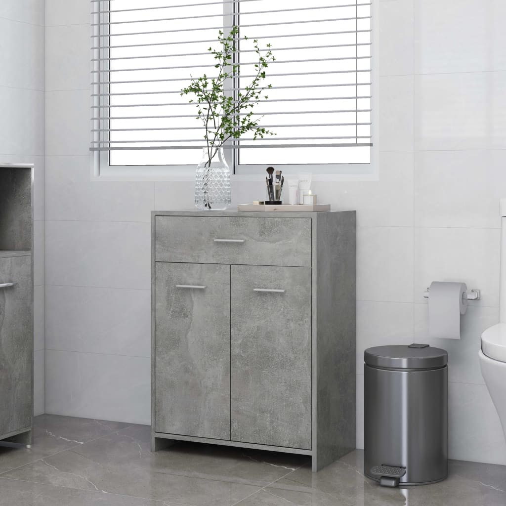 Szafka łazienkowa Shiro wykonana jest z dobrej jakości płyty w kolorze szarego betonu. Polecamy.