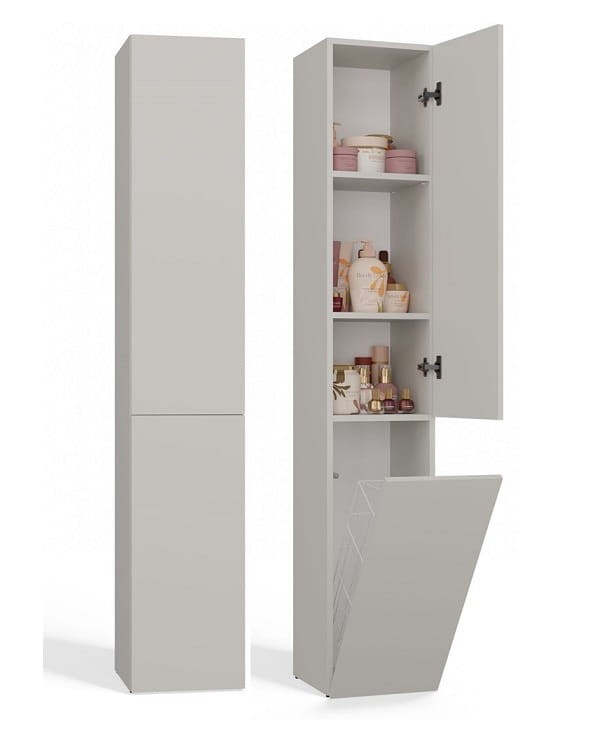 Słupek Tulia to idealny balans między estetyką a praktycznością. Jego smukła sylwetka pozwala na efektywne wykorzystanie każdego centymetra w Twojej łazience, jednocześnie zapewniając wystarczająco dużo miejsca na przechowywanie. Dzięki wbudowanemu koszowi na pranie, utrzymasz swoją łazienkę w nieskazitelnym porządku.