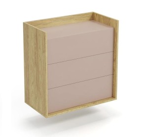 Prezentowany mebel wykonano z wysokiej jakości i solidnej płyty okleinowanej, o niebagatelnej grubości 18 mm. Wyposażony jest on w nowoczesny system otwierania push-click, obrzeża ABS, a jego eleganckie wybarwienie to hikora naturalna oraz antyczny róż (w ofercie również inne kolory).