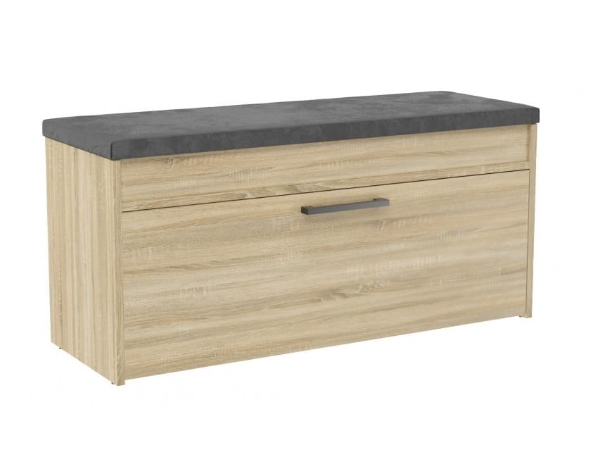 Szafka z siedziskiem wykonana jest z solidnego materiału, jakim jest płyta meblowa. Zastosowanie tego surowca drzewnego oznacza, że mebel jest wytrzymały i cechuje się naturalnym wyglądem.