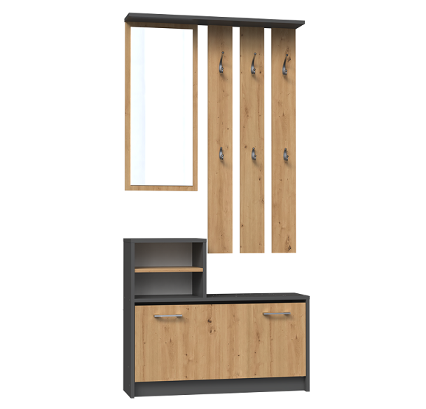 Garderoba do przedpokoju antracyt z dębem artisan