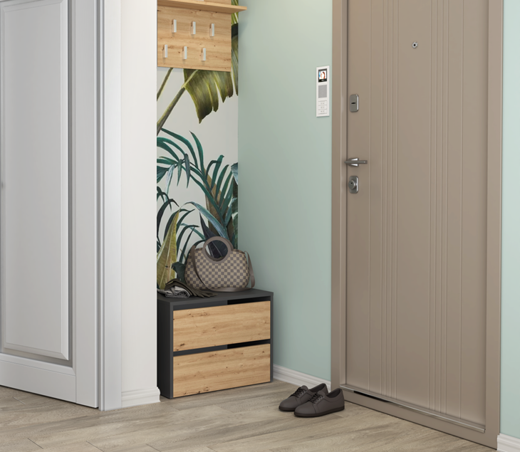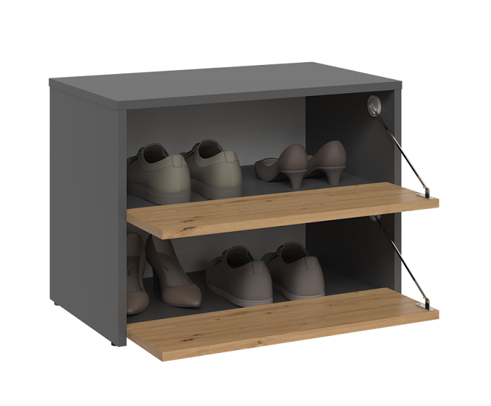 Podręczna szafka na buty nie musi być duża. Już minimalistyczny mebel przeznaczony do ich przechowywania okiełzna obuwniczy chaos! Dlatego proponujemy Państwu klasyczny model! Szafka na buty Mood w kolorze antracyt z dębem artisan to idealne rozwiązanie!