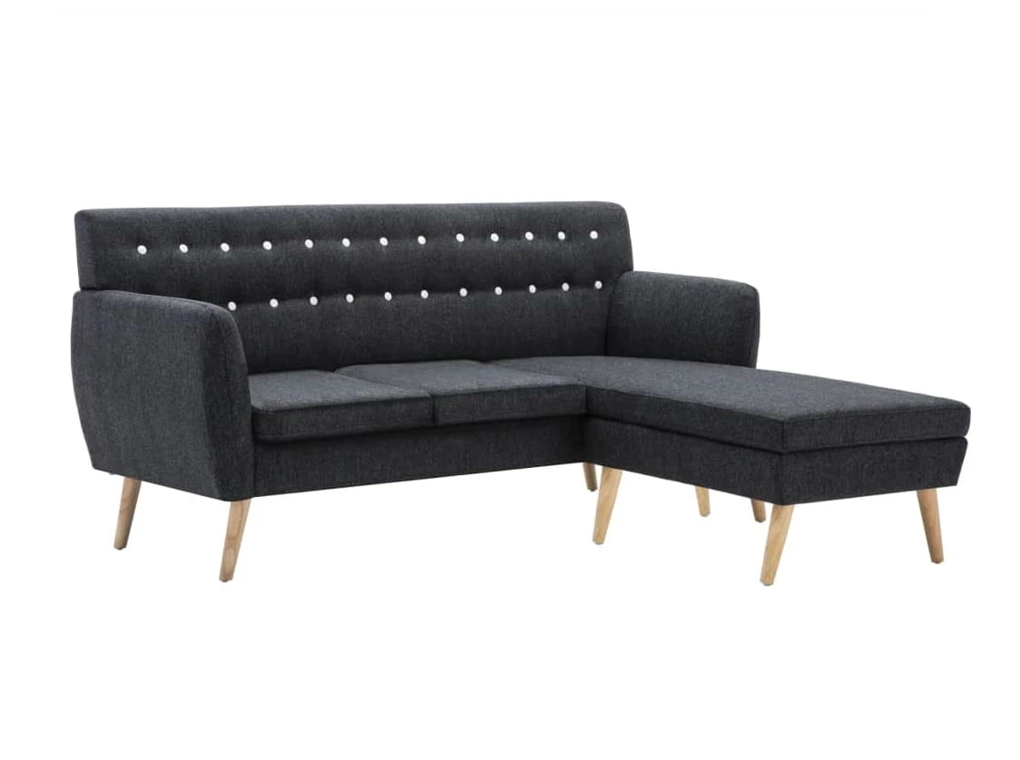 Sofa z leżanką Luna posadowiona jest na smukłych nóżkach z litego drewna kauczkowca. Jej solidna rama wykonana jest z wysokiej jakości, solidnej płyty MDF. To gwarantuje, że właściwie użytkowany mebel - posłuży przez długi czas. Na Państwa uwagę zasługuje interesujące tapicerowanie. Wykorzystano tutaj niezwykle wytrzymałą tkaninę poliestrową zaś wygodne siedzisko wypełnione jest grubą, piankową wyściółką. Ponadto zastosowano ponadczasowy zabieg z pikowaniem. Ta forma dekoracji mebli tapicerowanych nigdy nie wychodzi z mody i nadaje im charakteru.